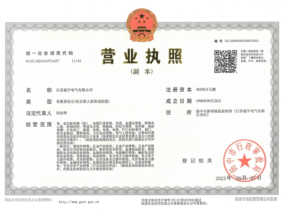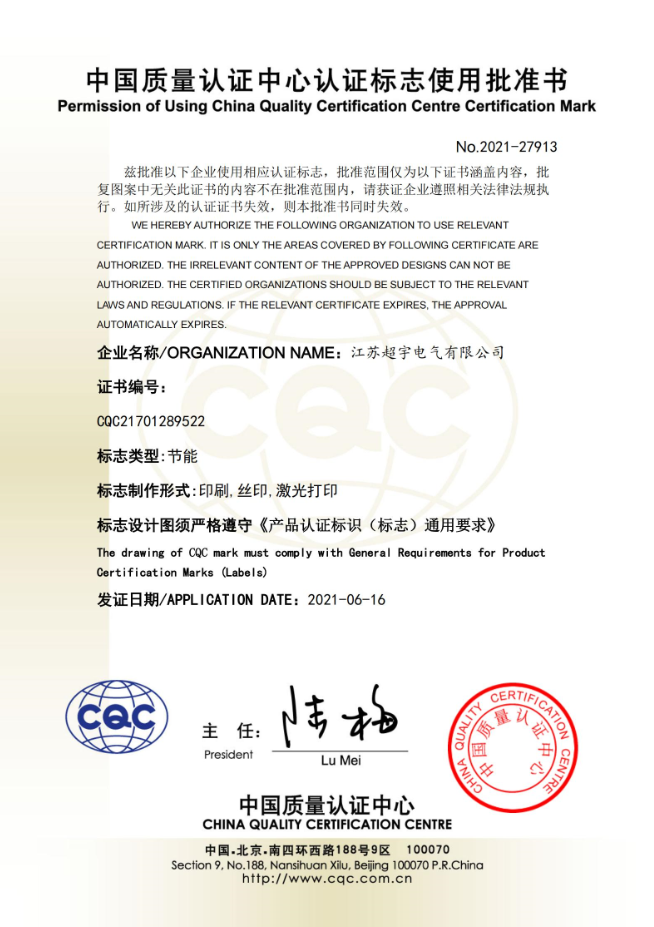 江蘇超宇電氣有限公司地處繁榮富饒的長江金三角,座落在聞名遐邇的生態(tài)示范區水上花園城市--揚中。公司成立于一九九六年,經過二十多年的發(fā)展進步,目前已形成專業(yè)化生產制造規(guī)模。 公司現有注冊資金3.0... ... [詳細>>]